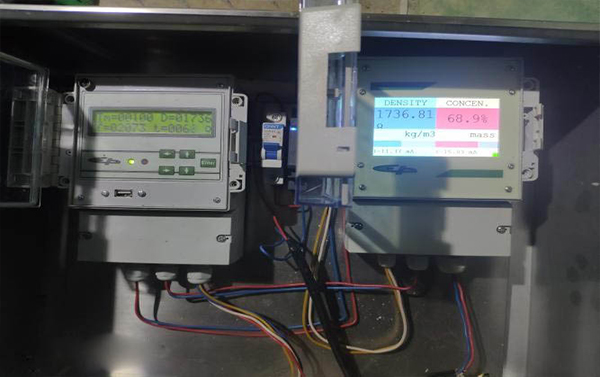 總結:儀表安裝在充填項目尾砂的管道上,用于測量尾砂的濃度,由于現(xiàn)場工況問題,安裝位置處容易沉沙,有時會測量誤差偏大,但是又沒有合適的安裝位置,也只能暫時先用著,情況已經(jīng)和現(xiàn)場領導說了,他們認同,如果想測量更精確,需要改變管道和安裝位置。