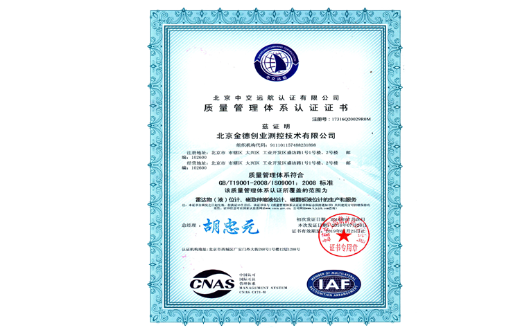 質(zhì)量管理體系認(rèn)證證書(shū)ISO9000