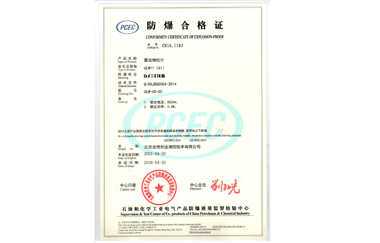 利馬克雷達(dá)物位計(jì)防爆合格證