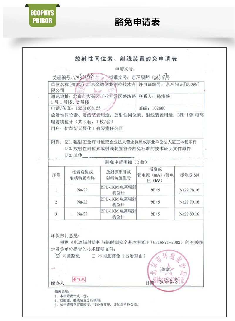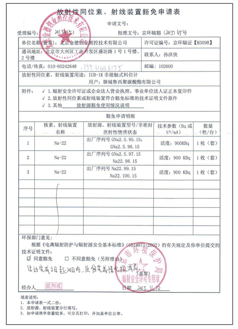 IUB-1K 物位計與傳統(tǒng)的非接觸式同位素測量設(shè)備不同,其產(chǎn)品使用無危害的天然鈉-22的伽馬輻射源,其輻射活性不超過IAEA輻射安全標(biāo)準(zhǔn)與條例中指定的“最低顯著活性”等級。因此本產(chǎn)品不在國家核監(jiān)管局、環(huán)保局、國家衛(wèi)生流行病學(xué)監(jiān)管局和國內(nèi)事務(wù)部的監(jiān)督范圍之內(nèi)。